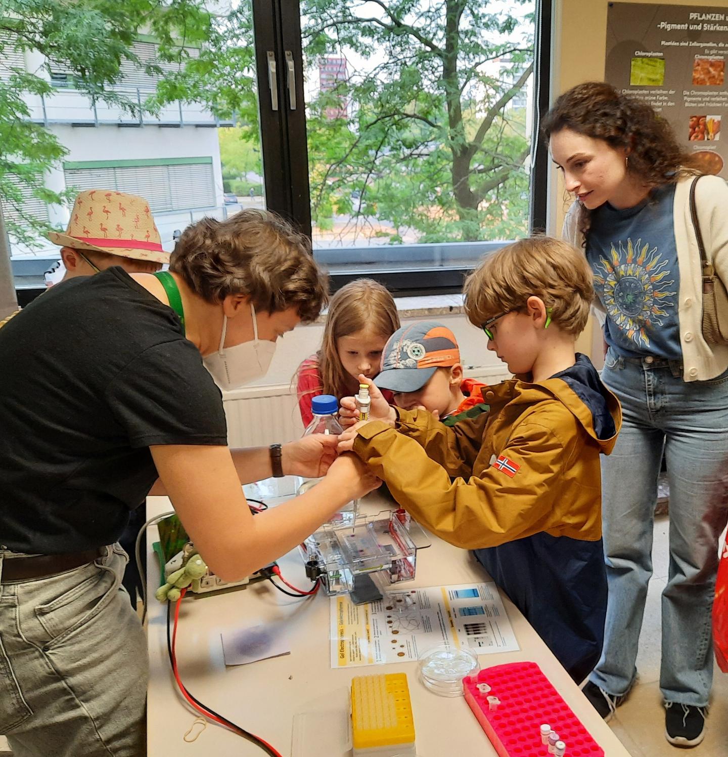 Ohne diese Methode geht in einem molekularbiologische Labor nichts: die Elektrophorese. Wie mit ihrer Hilfe komplexe Gemische von Molekülen auf ein Gel aufgetragen und nach ihrer Größe aufgetrennt werden, kann hier ausprobiert werden.